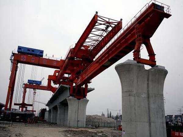 2.在公路、鐵路軌道上行駛、用于整跨架設(shè)小跨梁的橋梁施工機(jī)械。因其架橋工效高,在中國(guó)鐵路橋梁標(biāo)準(zhǔn)設(shè)計(jì)中,多考慮以它架設(shè)為設(shè)計(jì)原則。其機(jī)身龐大,超出鐵路運(yùn)輸限界,須解體運(yùn)送,到達(dá)工地后,再組裝使用。