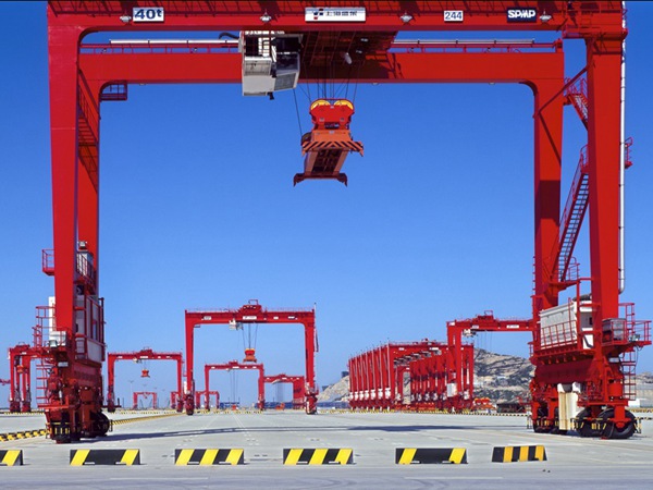 集裝箱裝卸:輪胎式龍門吊和軌道式龍門吊是港口作業(yè)中常用的類型。輪胎式龍門吊(RTG)具有較高的機(jī)動(dòng)性,適合在不同堆場之間轉(zhuǎn)移集裝箱。軌道式龍門吊(RMG)則在固定軌道上運(yùn)行,適合高強(qiáng)度、高效率的作業(yè)。
