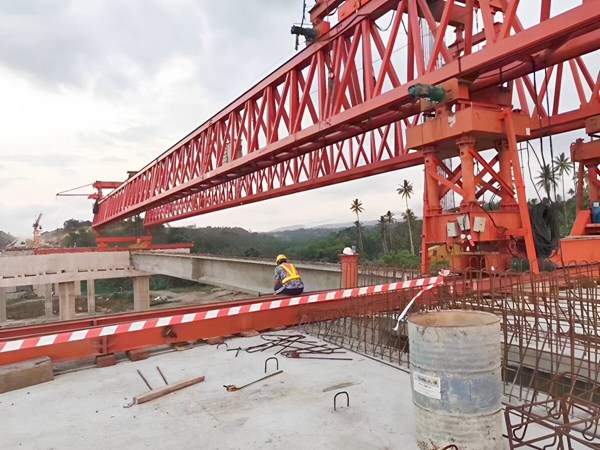 對于彎道中常見的 “不等跨徑” 或 “漸變寬度” 橋梁,架橋機可通過調(diào)整起吊間距、主梁支撐位置,靈活匹配不同長度 / 寬度的預(yù)制梁,無需頻繁更換設(shè)備或搭建臨時支架,尤其適用于城市互通立交、山區(qū)彎道橋梁等復(fù)雜場景。