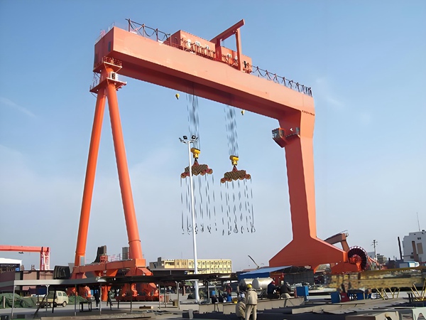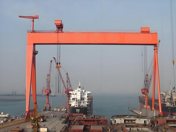 大噸位承載能力:造船龍門吊采用雙主梁結(jié)構(gòu)、剛性或柔性支腿設(shè)計(jì),搭配高強(qiáng)度合金材料,單吊或抬吊能力可達(dá)數(shù)百至數(shù)千噸,能直接吊運(yùn)大型、巨型船體分段,無需對分段進(jìn)行拆分,減少分段拆分和拼接的額外工序,提升合攏作業(yè)效率。